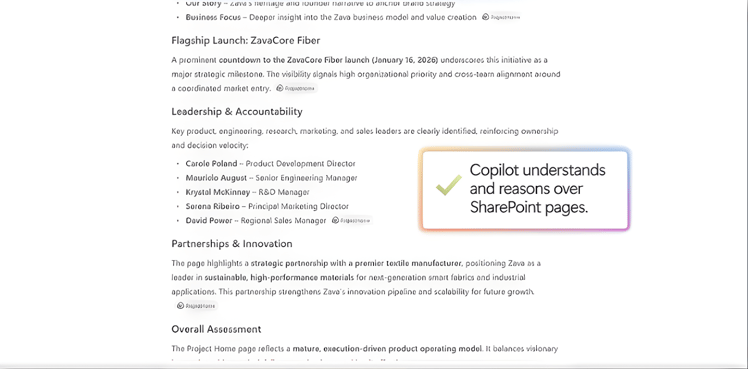 Lastly, for Sharepoint content, Copilot can directly analyse pages and documents within the Microsoft 365 ecoystem, generating tailored summaries suited to different user needs. This allows users to quickly gain insights without additional effort. With ChatGPT, users typically need to manually extract and input the relevant content before receiving a summary. It is often time-consuming and tedious especially when information is needed urgently.